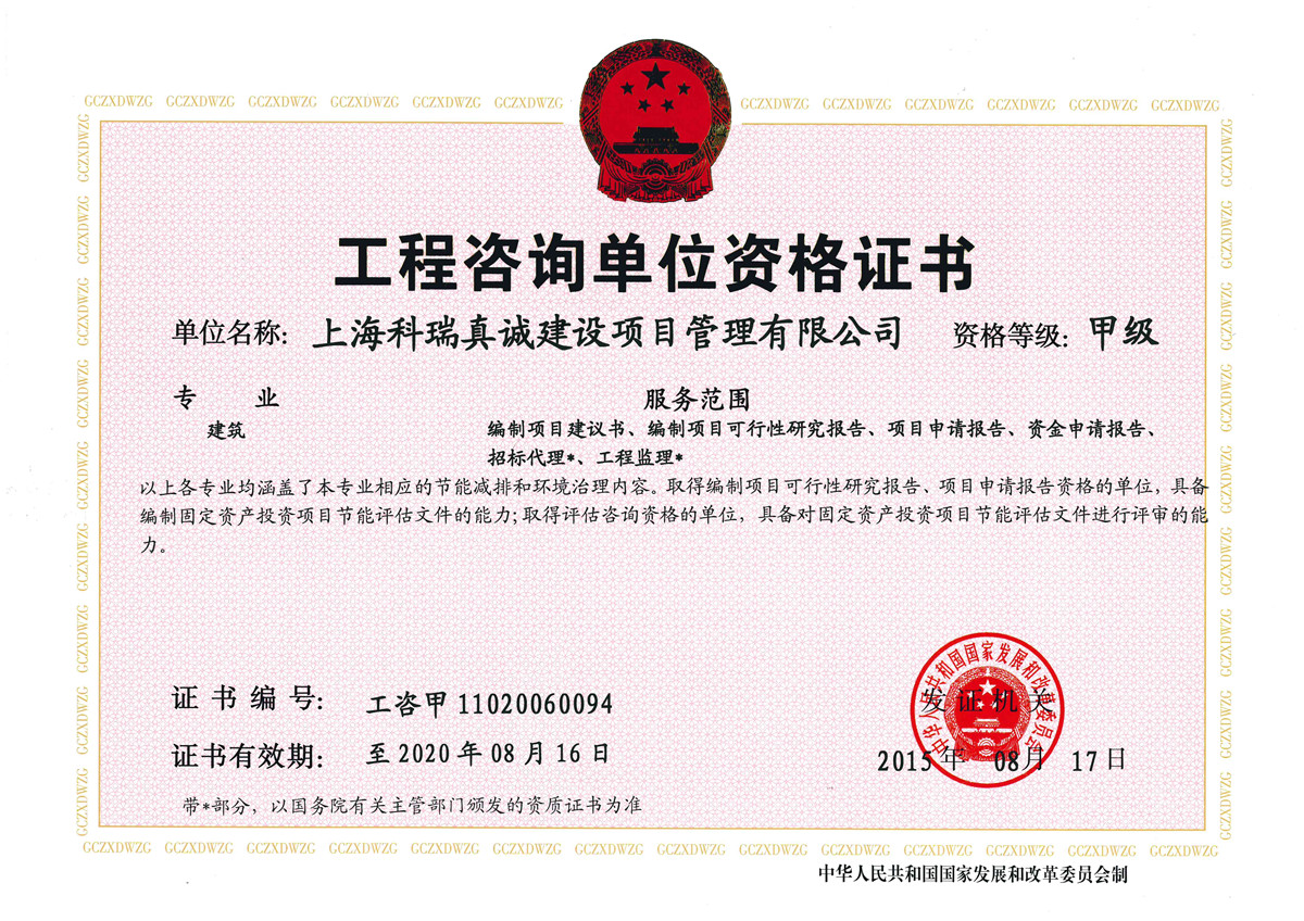 - 发改委工程咨询(建筑)甲级资质