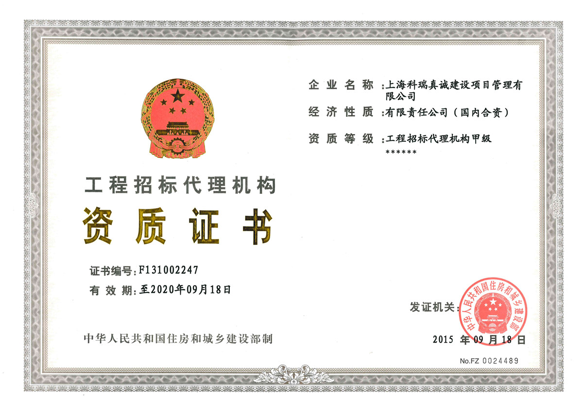 - 住建部工程招标代理甲级资质