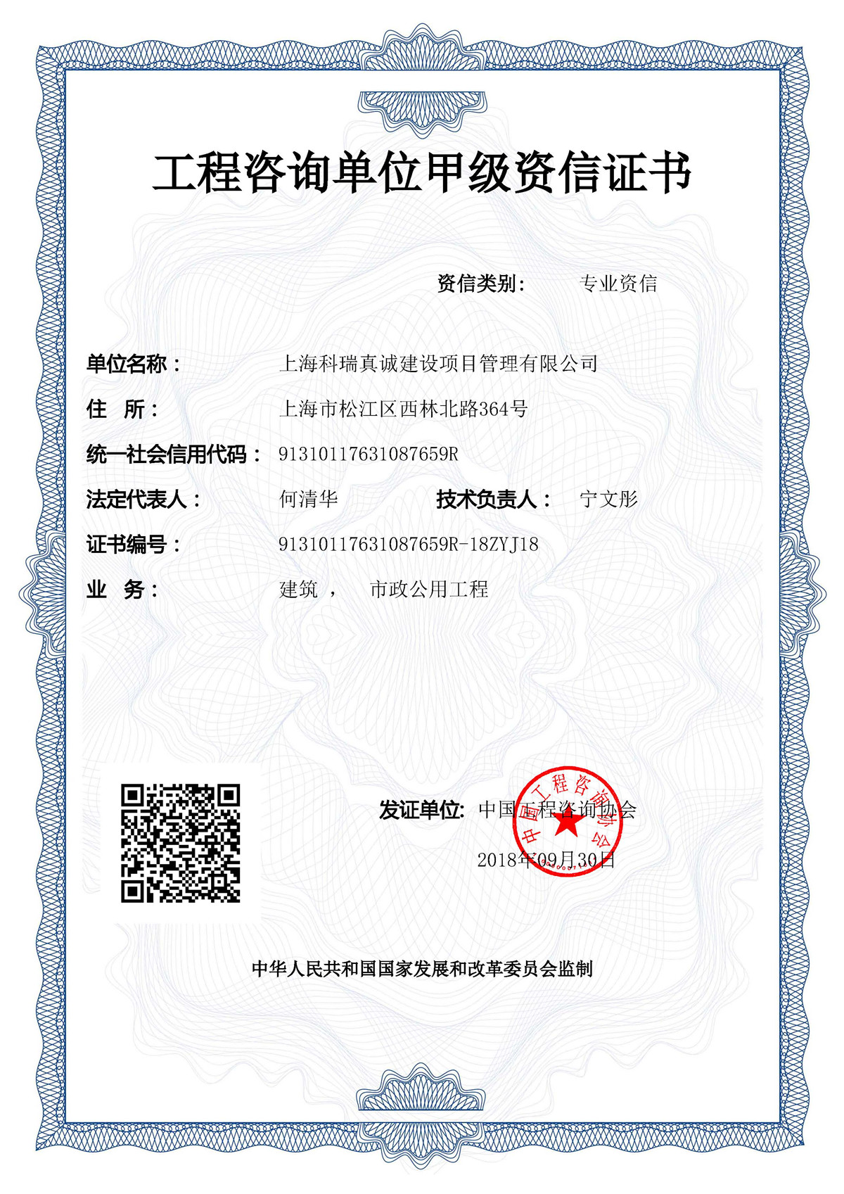 工程咨询单位(建筑、市政公用工程)甲级资信证书