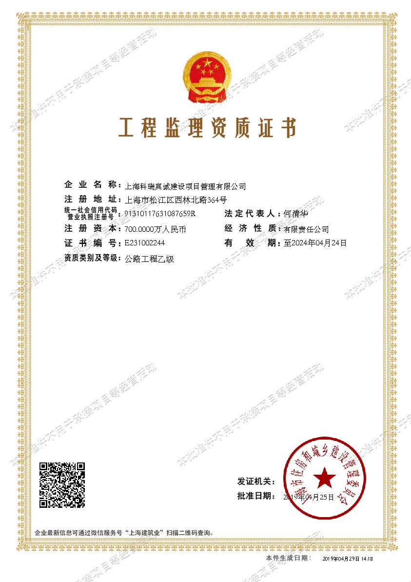 - 上海工程监理(公路工程)乙级资质