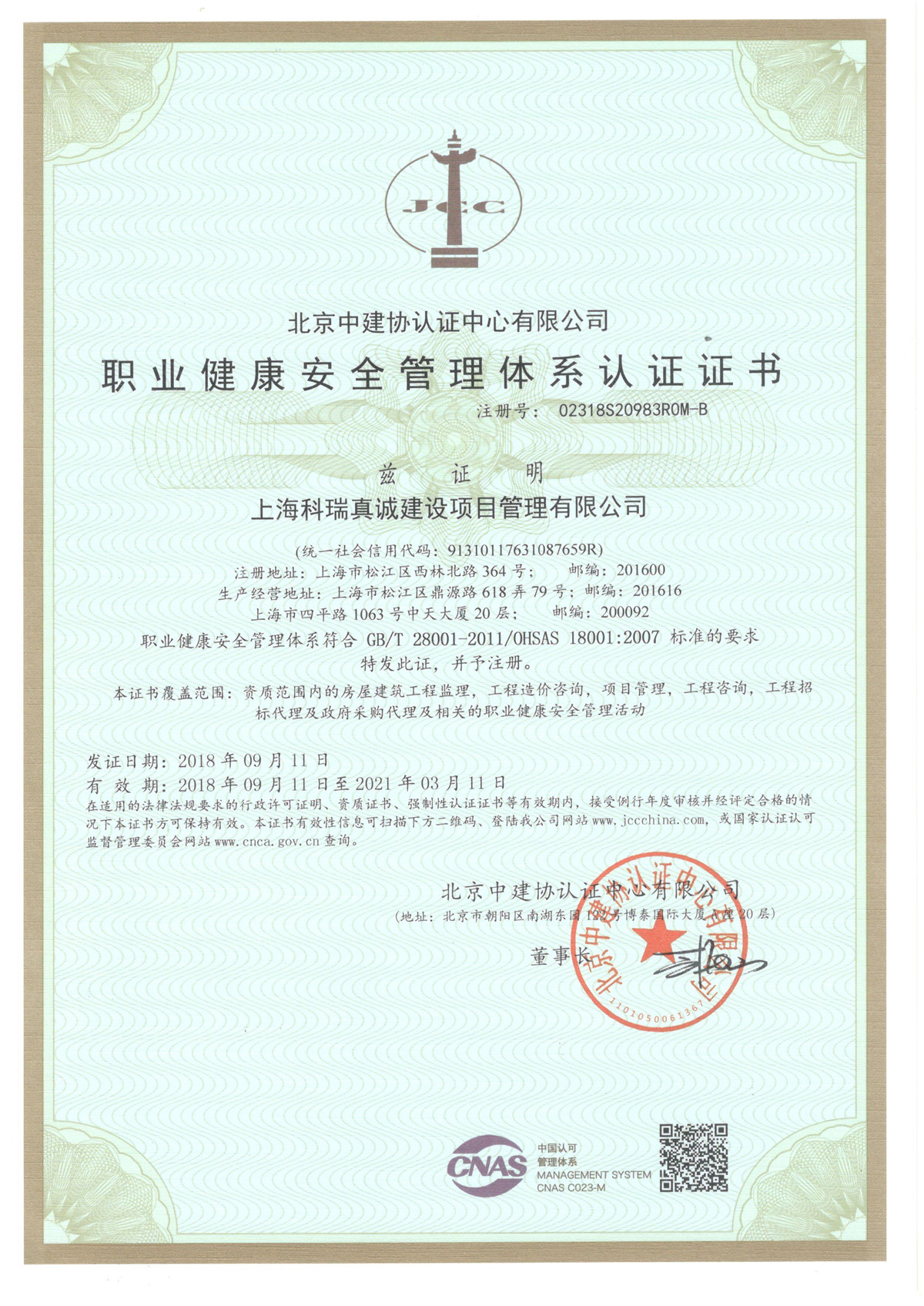 - 职业健康安全管理体系认证