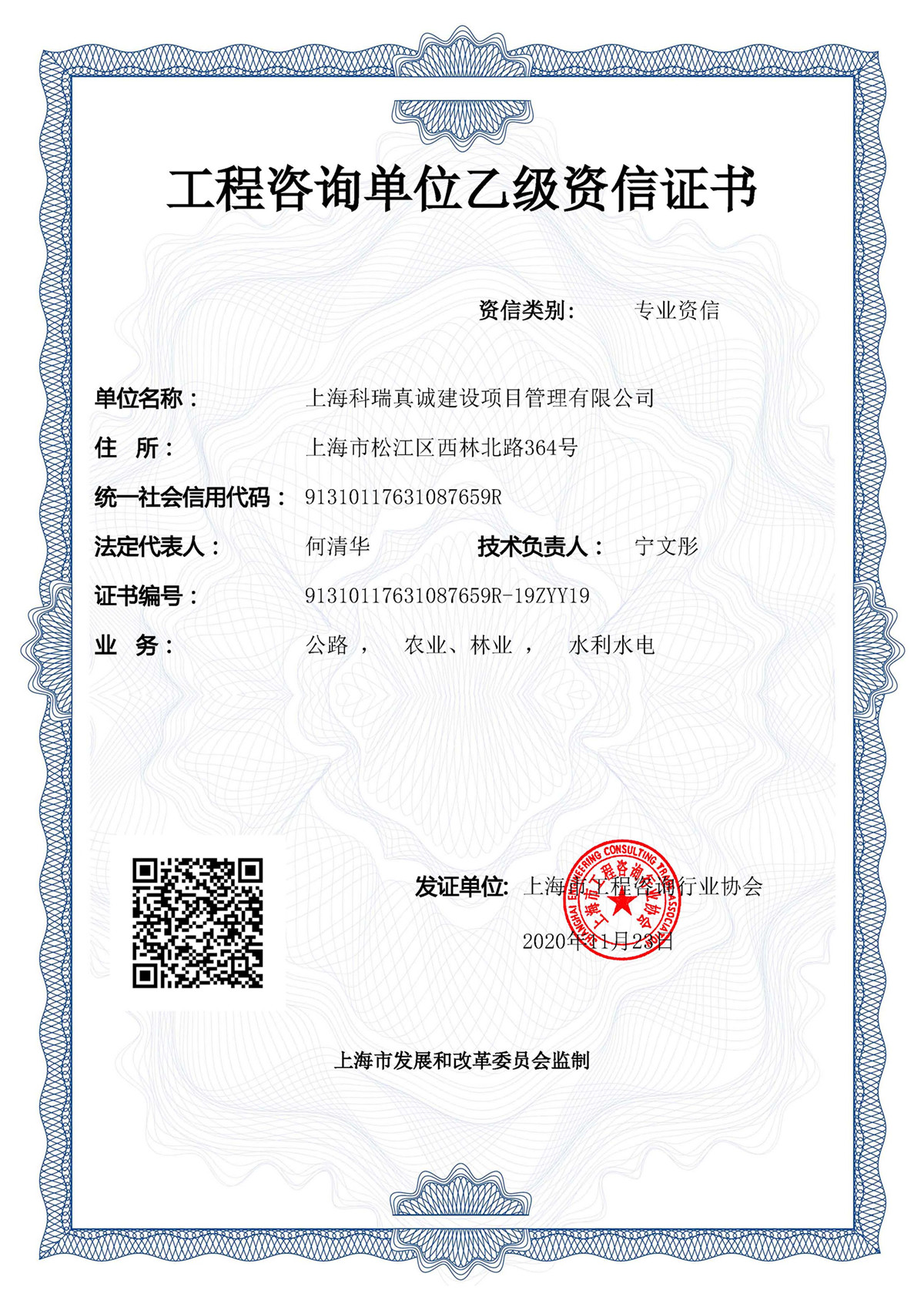 - 工程咨询单位(农业、林业、水利水电)乙级资信证书