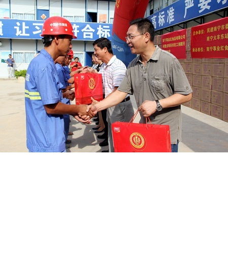 8月26日上午,由南宁市重点建设项目办公室与民建南宁市委共同主办的“迎世锦贺中秋 同心•民建思源工程—南宁事业红公司关爱重点项目农民工”中秋慰问活动在南宁市火车东站片区南广场地下空间工程项目部举行。市政府副秘书长、南宁市重点建设项目办公室主任、东站指挥部常务副指挥长梁明志,东站指挥部副指挥长冯林、黄文中,项目业主、上海科瑞真诚项目管理公司等单位相关领导及嘉宾参加了慰问活动。