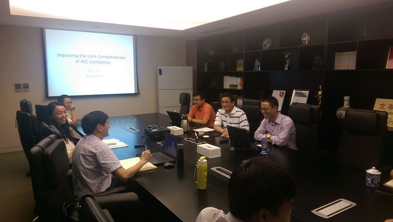 2014年9月30日,应公司总裁、复杂工程管理研究院何清华教授的邀请,美国Fluor公司绩效工程师戴久坤博士在公司总部会议室举办了主题为《如何提高建筑企业核心竞争力》的培训,主要内容包括:项目绩效的评估;企业知识管理的构建 ;全球一流工程公司最佳实践案例等。
