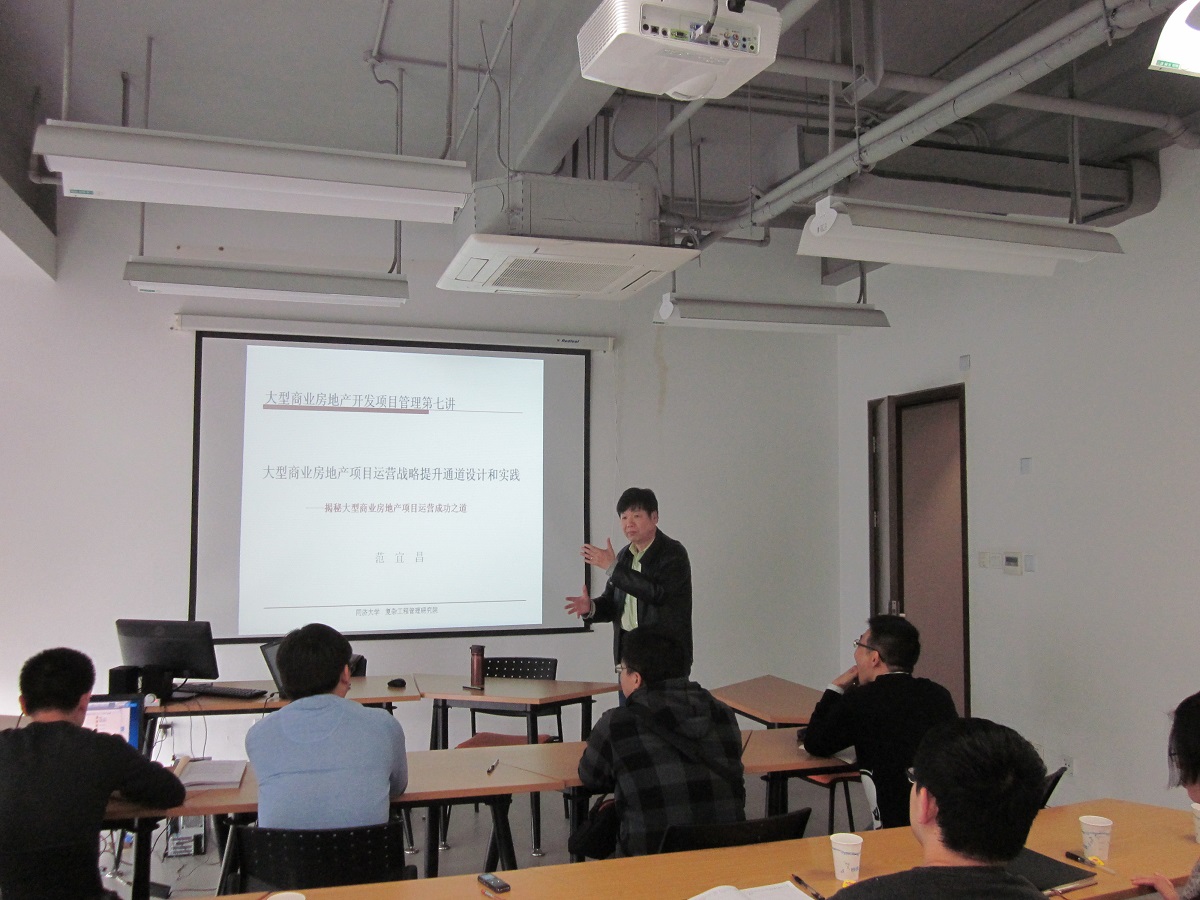 11月21日《大型商业房地产前期策划与设计管理》系列讲座第七讲在同济大厦A楼409教室举行,范宜昌老师本期给我们带来的主题是“大型购物中心经营战略提升通道设计和实践探讨”。
