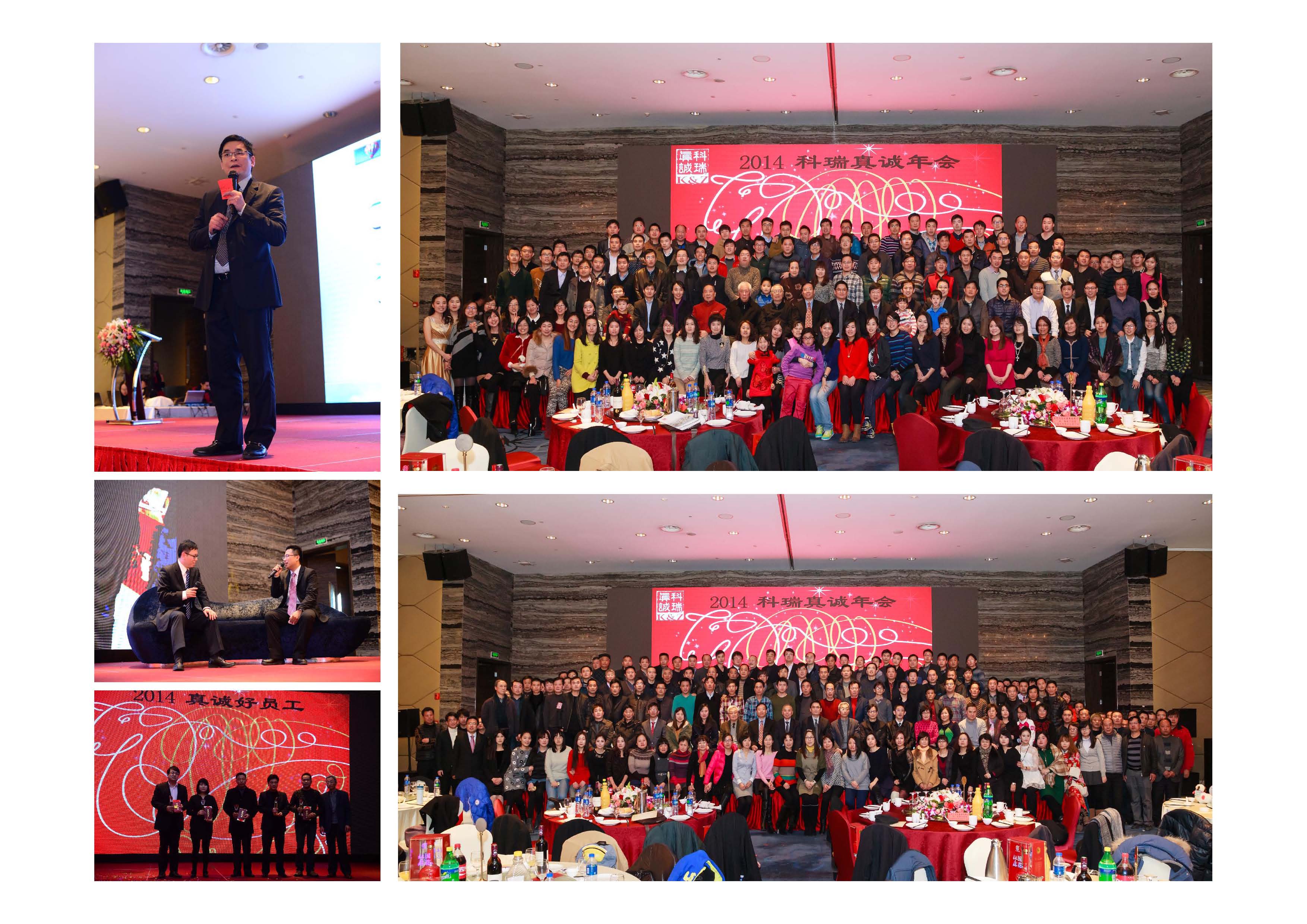 2015年1月31日,公司在松江假日酒店大宴会厅举行了“心相融•梦共生”2014年科瑞真诚年会,公司员工及科研团队学生共350余人参加了此次年会。