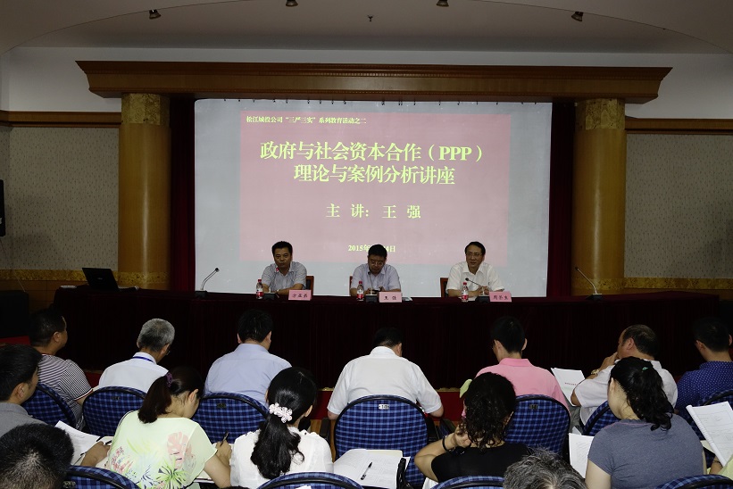 为了深入学习国家发展改革委《关于开展政府与社会资本合作的指导意见》精神,帮助松江区各有关单位学习掌握PPP项目的策划与实施,有效运用上海城投成熟运作经验推进松江区政府性项目公私合作模式发展,拓宽社会资本融资渠道,促进地区投资主体多元化发展,2015年7月24日下午由上海松江城镇建设投资开发有限公司(以下简称城投公司)主办,我公司协办的政府与社会资本合作(PPP)理论与案例分析培训讲座在建设大厦5楼区建管委中心会议室成功举行。