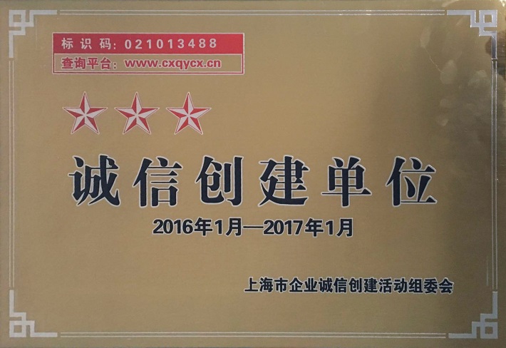近日,公司被上海市“企业诚信创建”活动组委会授予上海市“三星级诚信创建单位”称号。