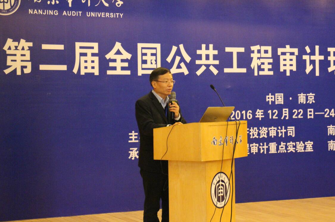 由国家审计署固定资产投资司和南京审计大学主办的“第二届公共工程审计理论与实务研讨会”于2016年12月22-24日在南京审计大学召开。本届会议以“新常态下公共工程审计理论与实务”为主题,旨在交流公共工程审计理论研究与实务工作创新性成果,尤其针对PPP融资模式下,以及大数据驱动下的工程审计相关主题进行深入探讨,为新常态下工程审计探索新理论、新思路、新模式、新方法。研究院副院长乐云教授受邀做主题报告:对工程审计数字平台的思考。乐云教授主要从国家审计法规与工程审计要素出发,着重讲述了如何运用信息化的手段政府投资项目的审计工作,主要讲述了三方面的思考:一是BIM辅助计算工程量;二是运用PMIS(项目管理信息系统)辅助工程过程管理;三是工程审计数字平台在工程审计过程的应用。报告紧密结合上海市胸科医院、上海地铁13号线、上海世博会、长江口深水航道治理工程等重大政府投资项目与无锡市新区审计局信息平台等案例进行讲解,报告内容丰富详实且紧密结合工程实践,引起与会的审计署领导、专家学者的浓厚兴趣。此外,研讨会的分会场三举行了国家自然科学基金重大项目“我国重大基础设施工程管理理论、方法与应用创新”博士生论坛,研究院的博士生杨德磊、刘明强、雪克来提、王婷、刘晓雪等参加论坛,论坛期间各校博士生针对博士生主题汇报踊跃发言,对彼此的研究工作提出了很多宝贵的意见和建议,并对下一次重大项目博士生论坛的召开表示了期待。