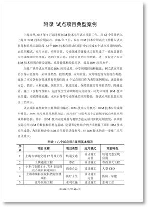 该《报告》共计四个章节和一个附录,包括国内外BIM技术应用与发展概况、上海市BIM技术应用现状、上海市BIM技术应用试点示范推进、上海市BIM技术应用展望以及试点项目典型案例等。