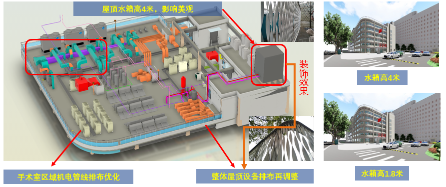 项目自筹建以来,应用BIM技术助力各阶段高效、有效进行。在设计阶段,结合BIM技术与医院建筑特色,利用云平台三维模型展示与医疗科室对接,提前协调医疗设备、家具及点位布置,正向设计辅助三级医疗工艺开展,科技手段助力智慧平面及流程设计。