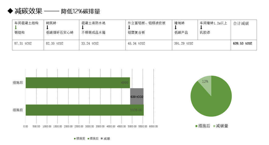 除此之外,我们根据以上措施进行了系统化的计算,结果得出,项目实施绿色施工,最大可降低施工过程中约23%的碳排量,由此可见,建筑的碳减排并不是空谈,而是确实可行的。