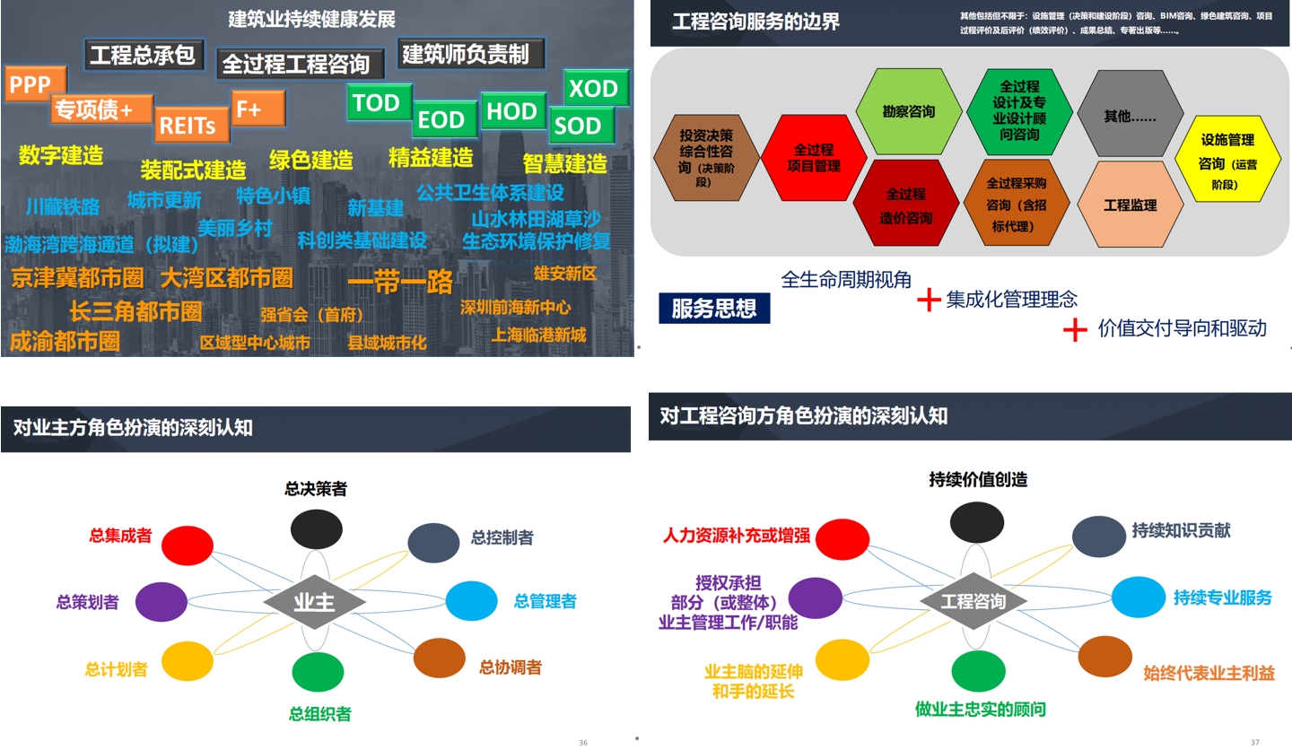 随后,何教授总结到:工程咨询服务的本质是全生命周期视角、集成化管理理念、价值交付导向和驱动三大服务思想和理念的系统整合,将涵盖体现全过程思想的“专项型”工程咨询服务以及“组合型”全过程工程咨询服务,工程咨询企业应该始终将提升专项咨询服务能力作为长期不懈的努力和坚持方向,一定以满足并超越个性化客户需求和要求为前提,探索工程咨询服务的创新方式。同时,聚焦于企业成长,应搭建符合自身企业特点的增长系统架构,在业务结构、客户结构、竞争结构、差异化结构、不对称结构、合作结构和价值结构中有所突破,有所创新,建立起为企业增长保驾护航的“护城河”。最后,何教授强调,工程咨询企业发展应长期坚持长期主义、专业主义、知识主义和共生主义。