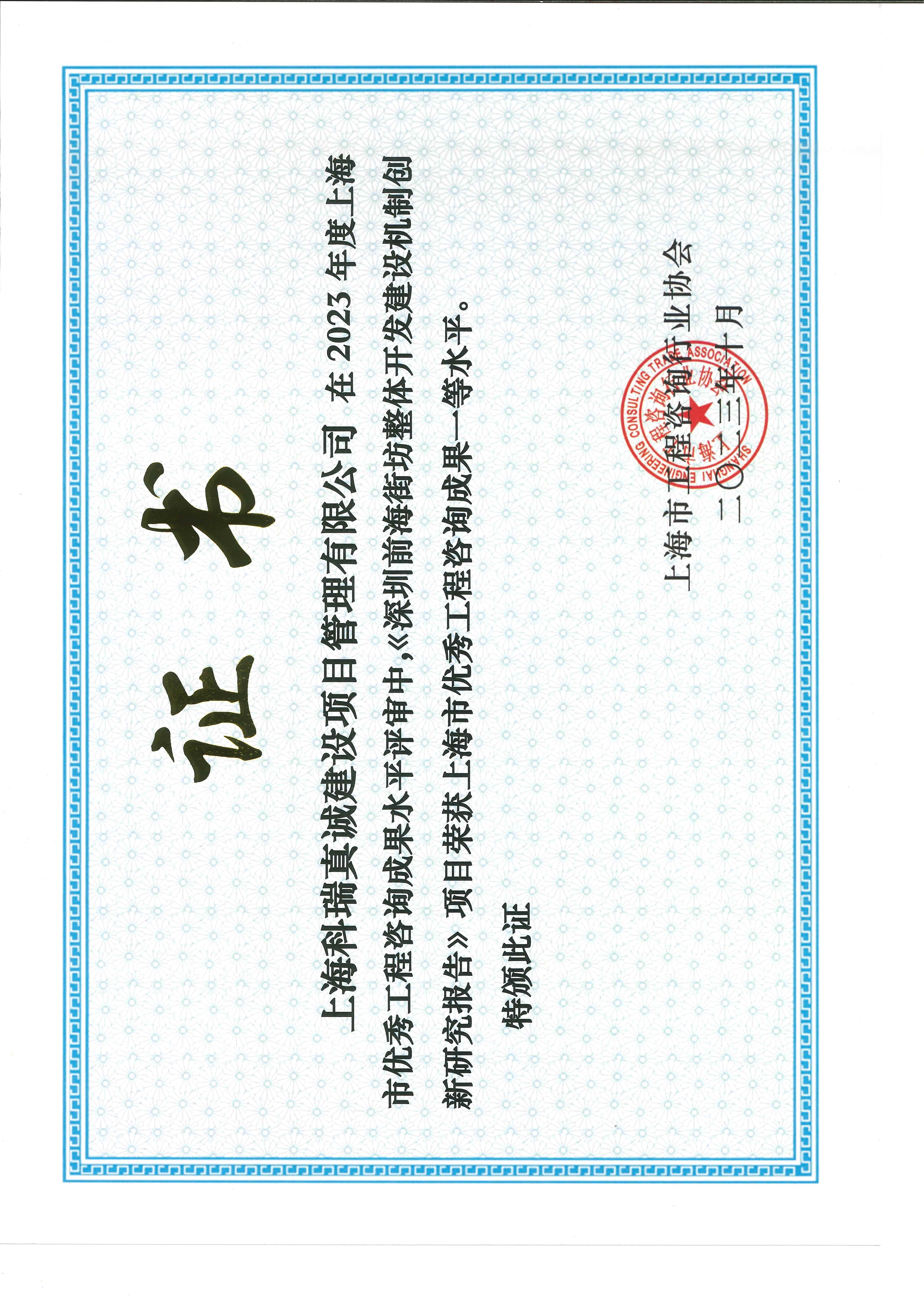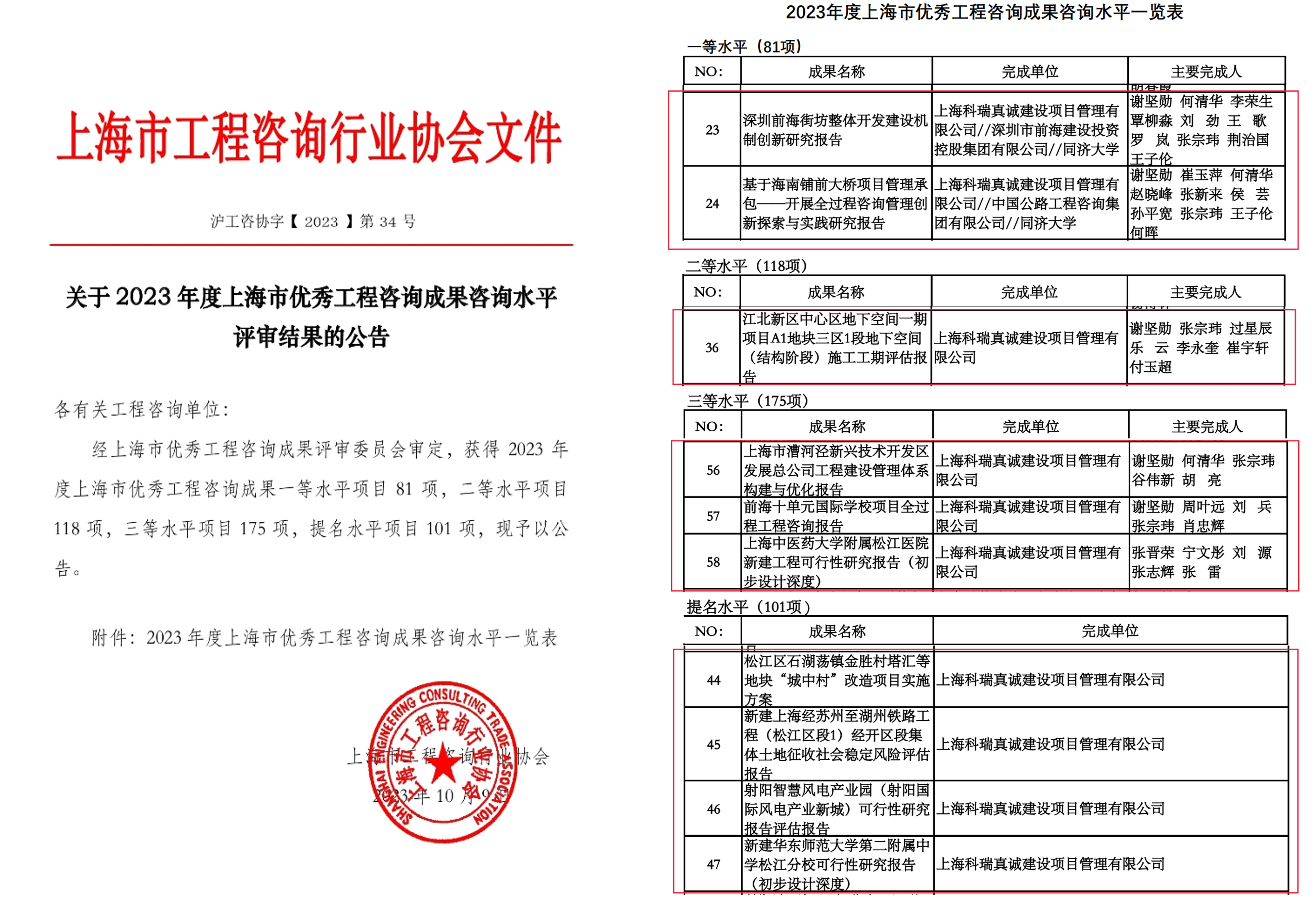 喜报∣上海科瑞真诚10项成果荣获2023年度上海市优秀工程咨询成果奖