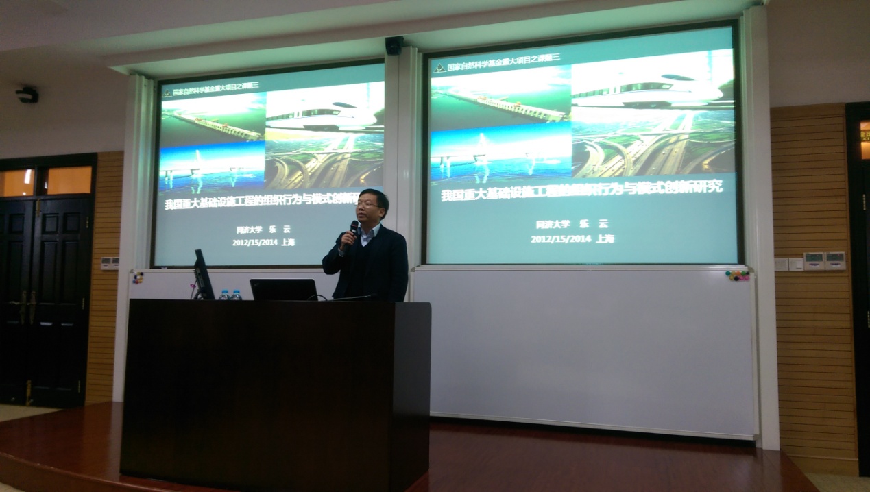12月15日,国家自然科学基金重大项目“我国重大基础设施工程管理的理论、方法与应用创新研究”2014年度评议会在上海交通大学徐汇校区中院召开。我院乐云教授、施骞教授、李永奎副教授、陆云波副教授、胡毅助理教授及博士生白居参加会议。