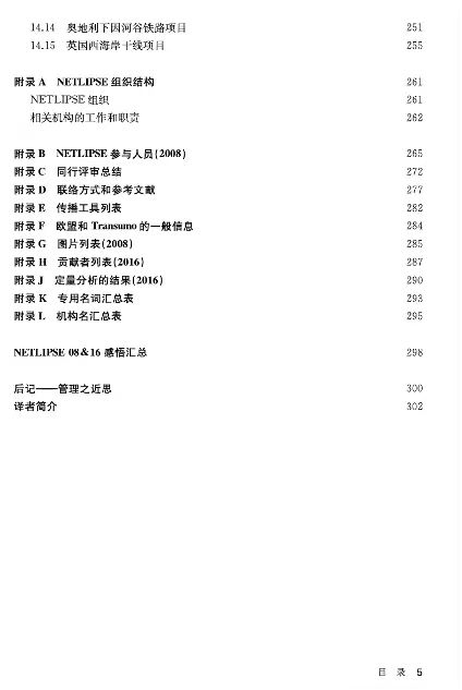 大型项目是平衡的艺术。角色清晰的参与主体、合理共担的系统风险与情境适应性的知识内化构成了项目的坚实基础,而互利共赢的信任关系、随风险伴生的增值机会以及扩展认知边界的协同创新则为其提供了必要的韧性。由此,管理者在规则与混沌的洪流中“脚踏实地、仰望星空”,这不失为重大工程管理的魅力所在。本书不仅系统地为提供了欧洲数十个重大基础设施工程的一手资料,而且采用定性和定量的综合方法勾勒出这些项目中的良好实践与经验教训。希望本书能激发广大读者就相关问题的交流、讨论与思考。