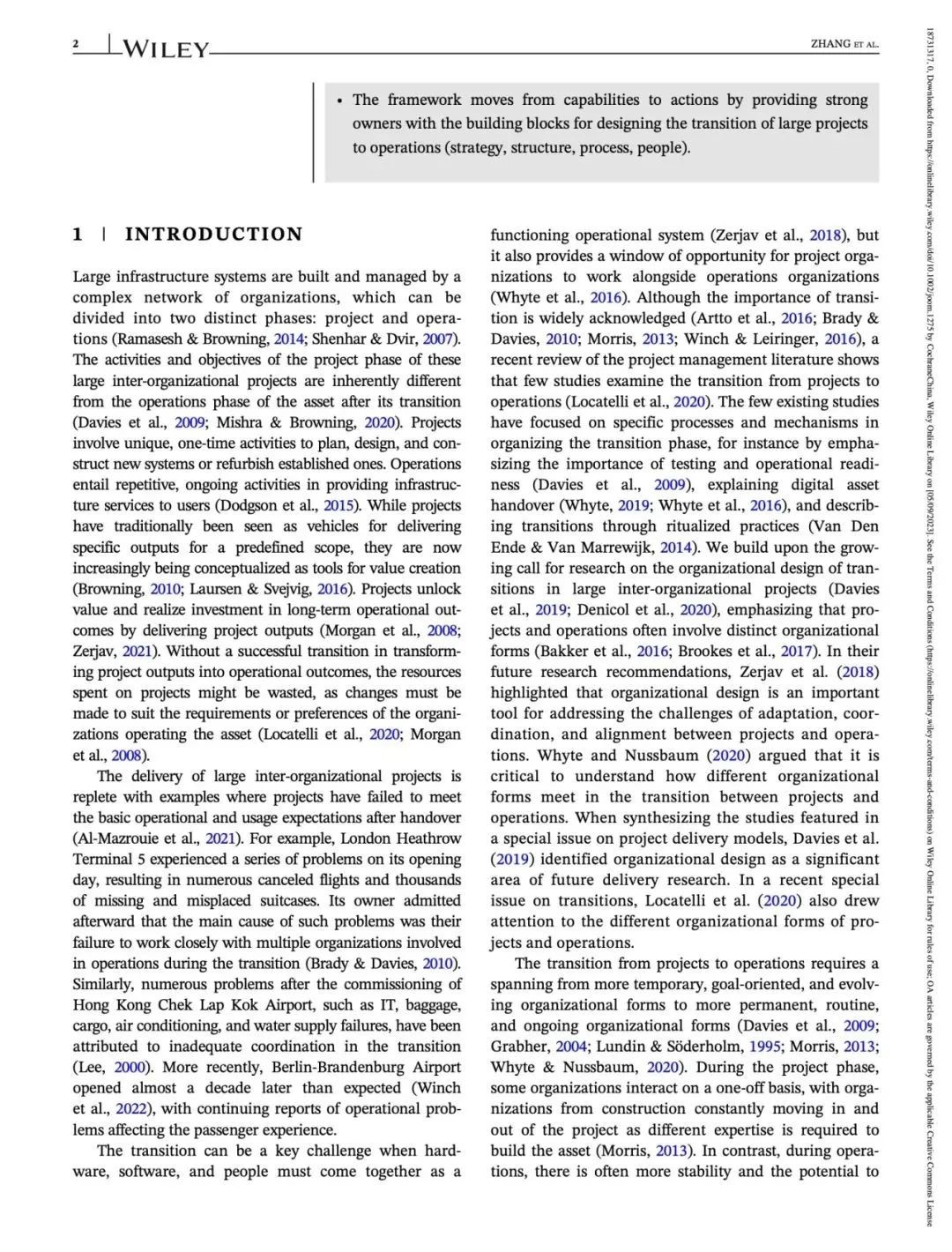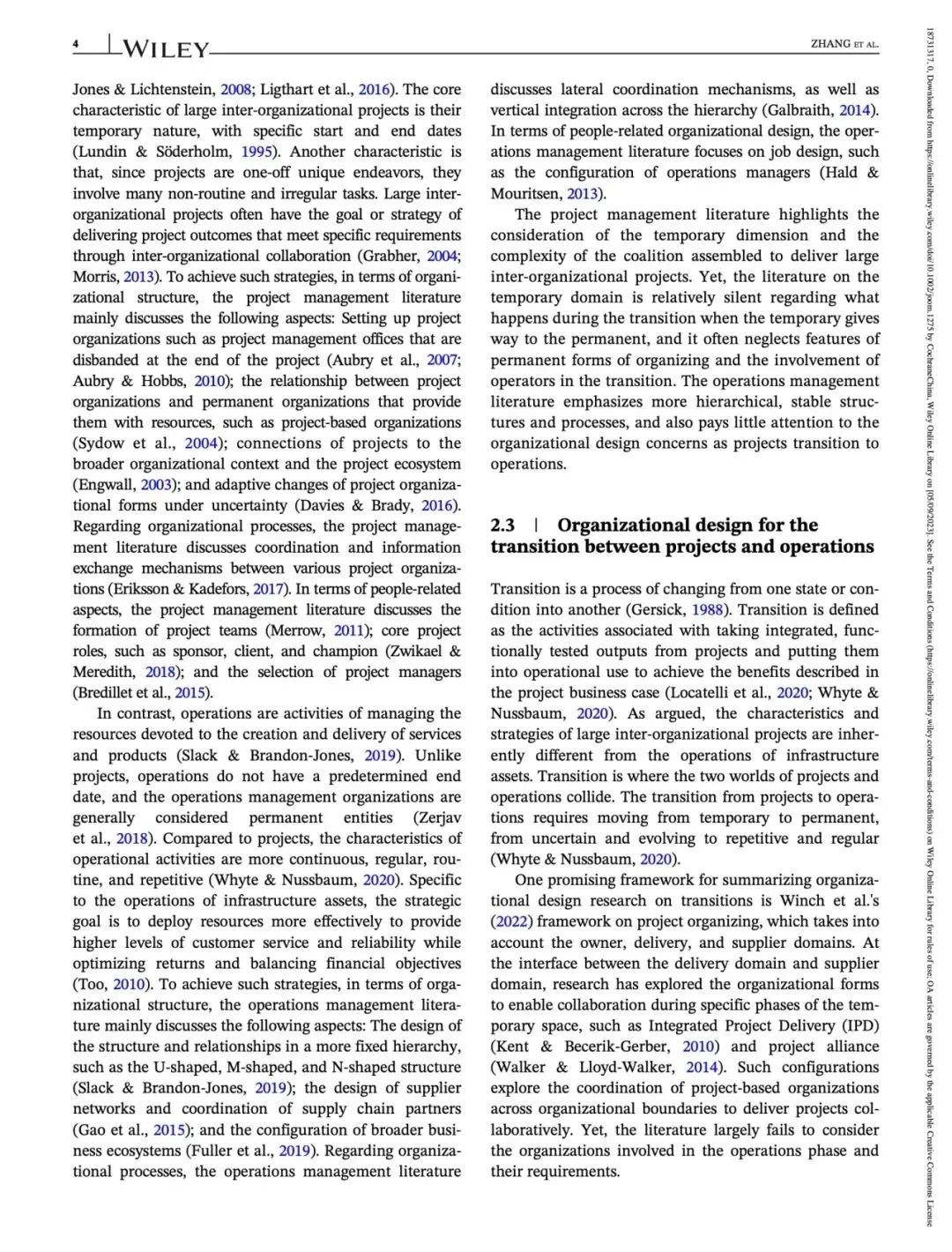 近日,同济大学复杂工程管理研究院在读博士研究生张馨月作为第一作者,乐云教授作为通讯作者的文章“Designing the transition to operations in large inter-organizational projects: Strategy, structure, process, and people”(设计大型跨组织项目向运营的过渡:战略、结构、过程和人员)被管理学领域国际顶级期刊 Journal of Operations Management(UTD 24)录用并发表。