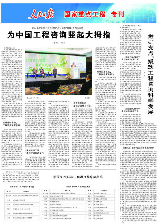 日前在巴西里约热内卢举行的国际咨询工程师联合会(FIDIC,菲迪克)2014年会上,颁发了26个年度“菲迪克工程项目奖”,其中“工程项目杰出奖”6个、“工程项目优秀奖”20个。