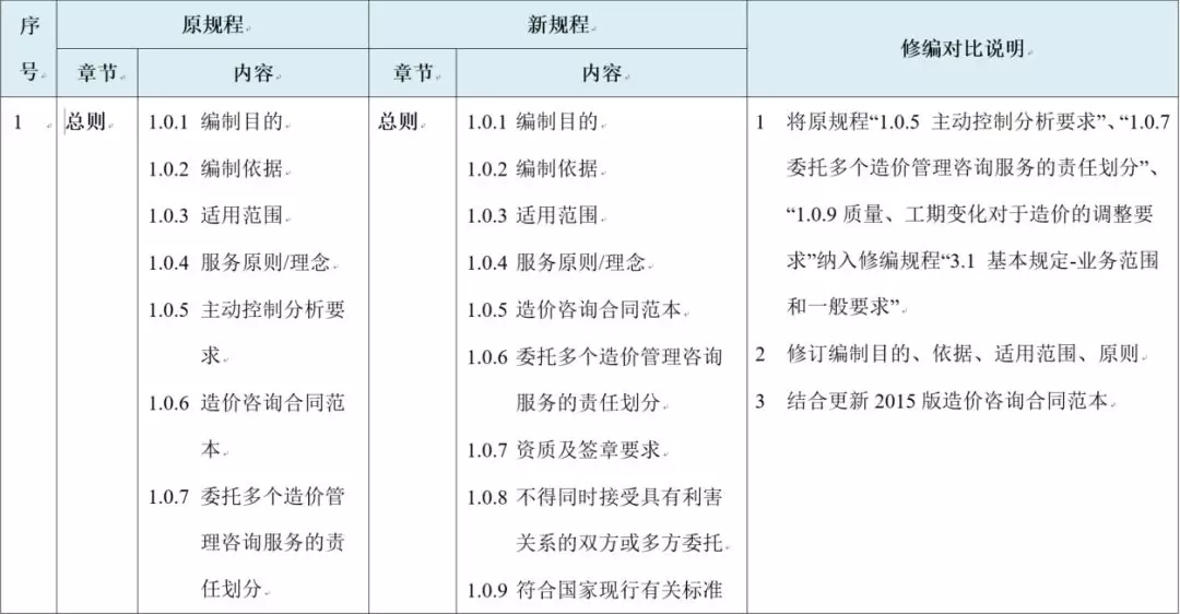 新规程在已实施的《建设工程造价咨询规范》(国家标准GB/T 51095-2015)规范下,对比原规程进行修编,突出可操作性,具体化实施内容和要求,可用于检查、评判造价咨询成果,规范造价咨询行为,编制要点如下: