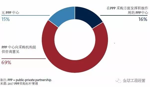 PPP中心(图3)的功能和作用在受访经济体中各不相同。在16%的经济体中,PPP中心不仅在采购过程中向采购部门提供建议,而且在PPP采购的过程中也发挥了更加积极的作用。在这种情况下,PPP中心既可以单独专门负责PPP采购(如在洪都拉斯,Coalianza是唯一可以采购PPP的公共机构),也可以与采购部门(如在阿拉伯埃及共和国)共同合作负责PPP采购。