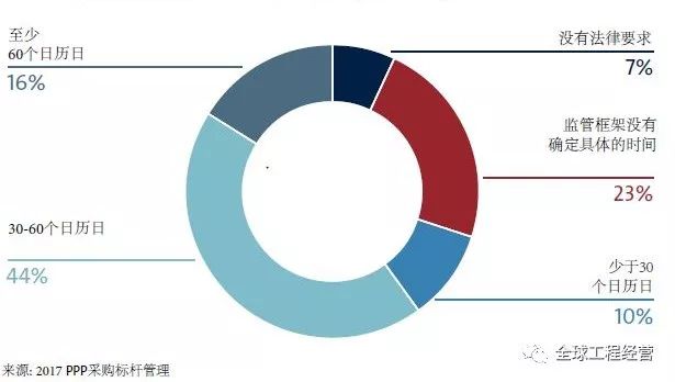提交标书的时间长短对确保PPP采购公平也是很重要的,这个期间通常在招标公告或者其他招标文件中。监管层在相关法律中通常为提交标书设置一个最短期间作为PPP采购的强制性规定,以确保采购部门对于这个问题没有自由裁量权。如果没有强制的法律规定,采购部门可能会以合法形式缩短提交标书的时间,这可能会弱化采购的竞争,从而故意排除某些投标人参与PPP项目采购。